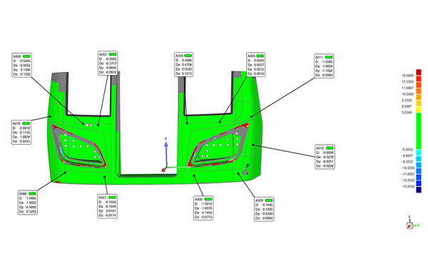 地鐵車頭在制造出來后,由于車頭曲面面積較大,用傳統(tǒng)的三坐標(biāo)難以進(jìn)行質(zhì)量把控和精度驗證,關(guān)鍵部位的變形無法檢測出來。